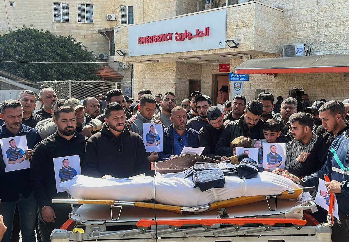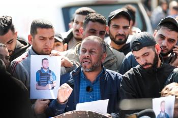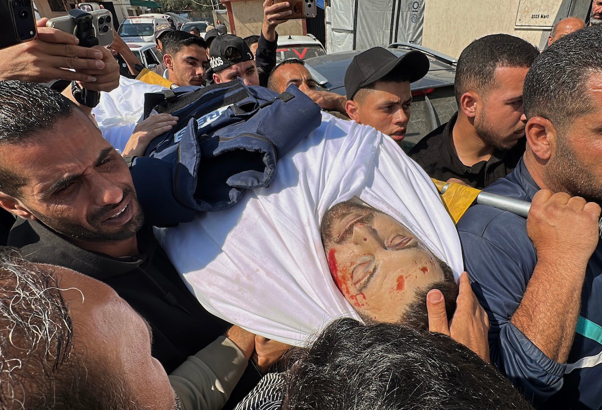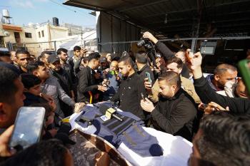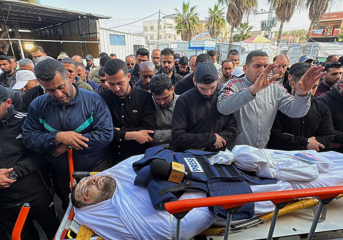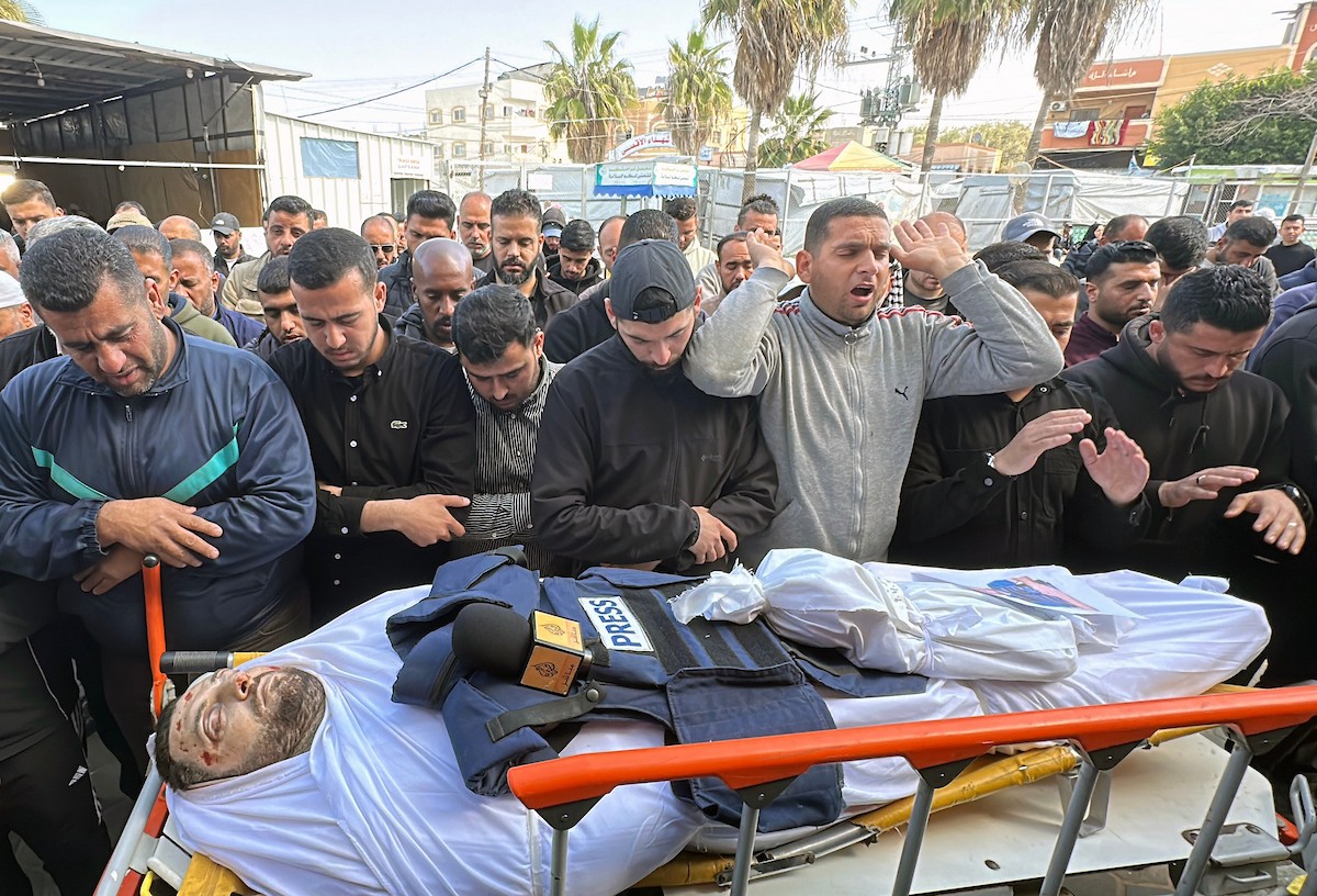 جنازة الزميل الصحفي محمد وشاح، مراسل قناة الجزيرة مباشر، الذي اغتيل في غارة جوية إسرائيلية بقطاع غزة، 9 أبريل/نيسان 2026.