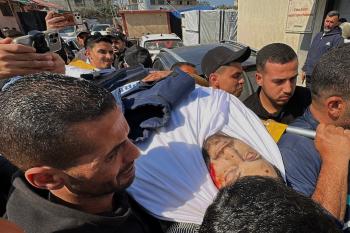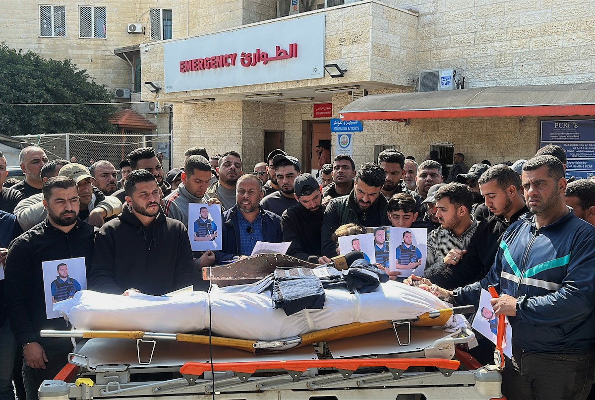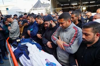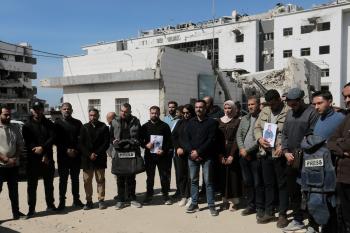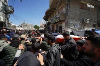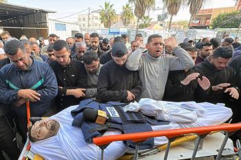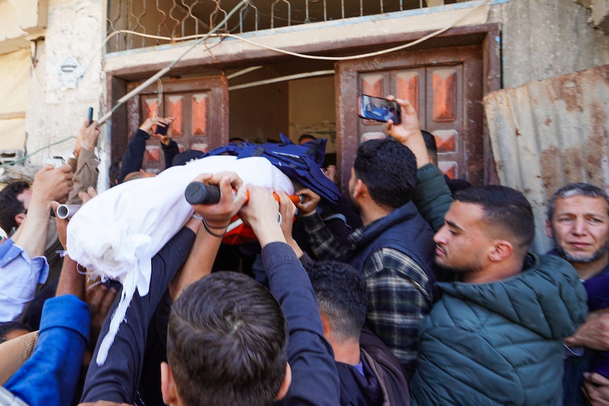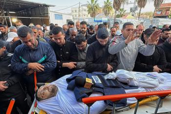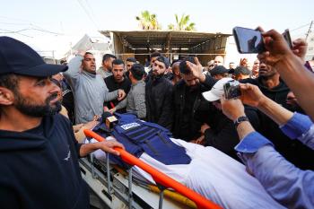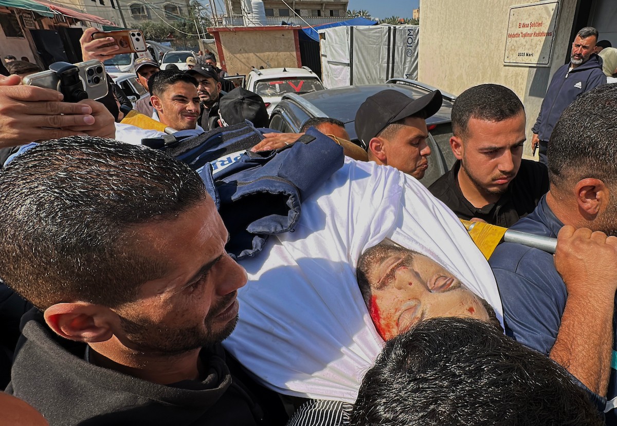 جنازة الزميل الصحفي محمد وشاح، مراسل قناة الجزيرة مباشر، الذي اغتيل في غارة جوية إسرائيلية بقطاع غزة، 9 أبريل/نيسان 2026.
