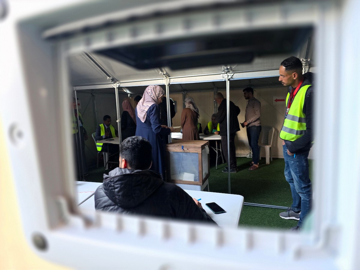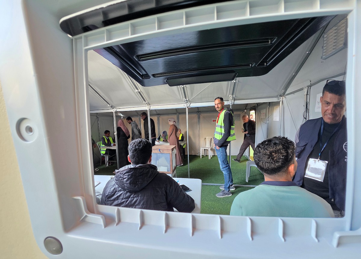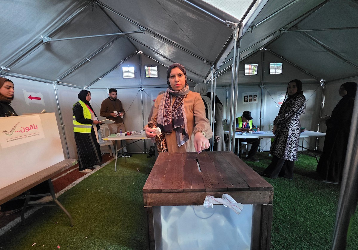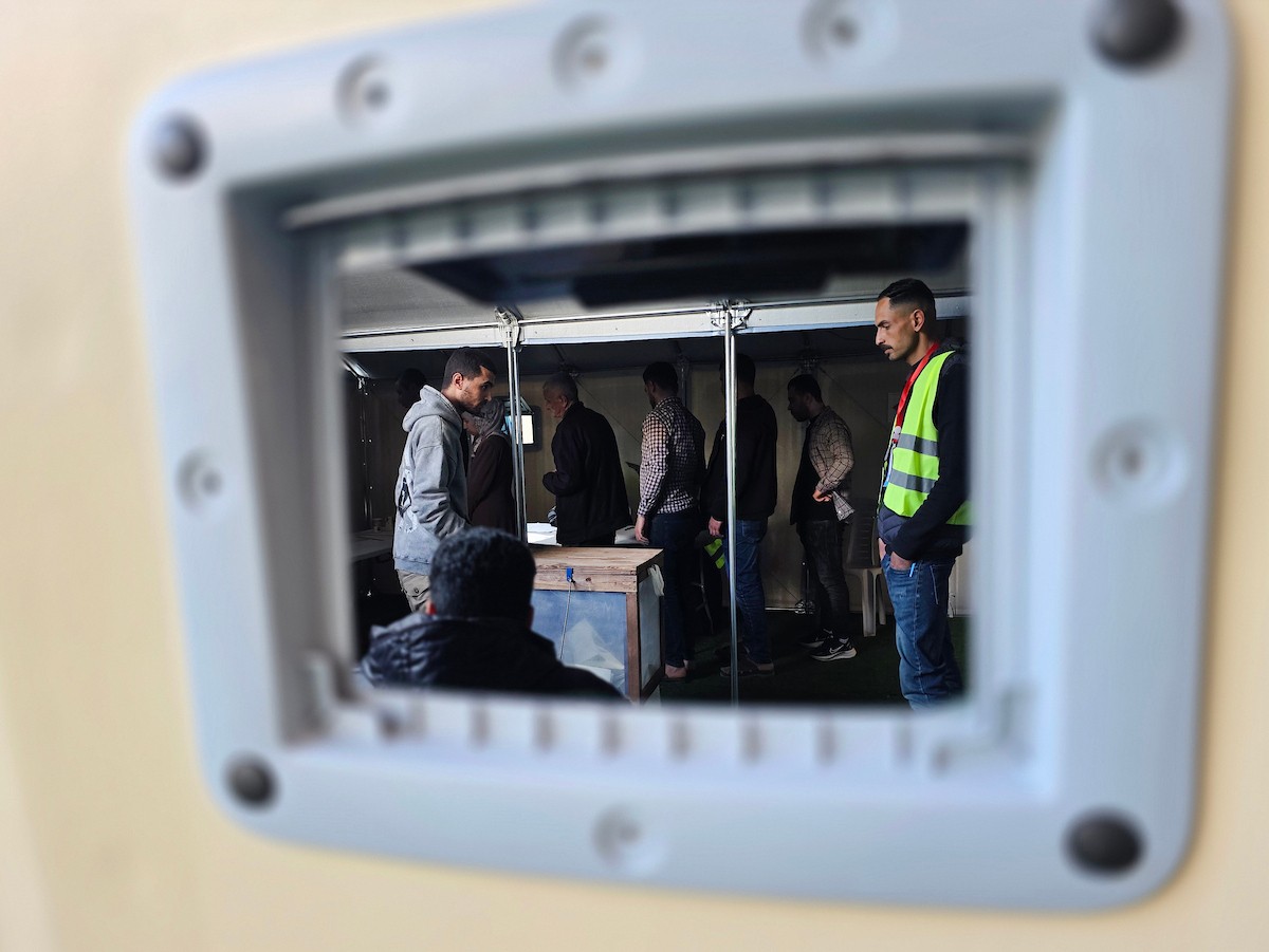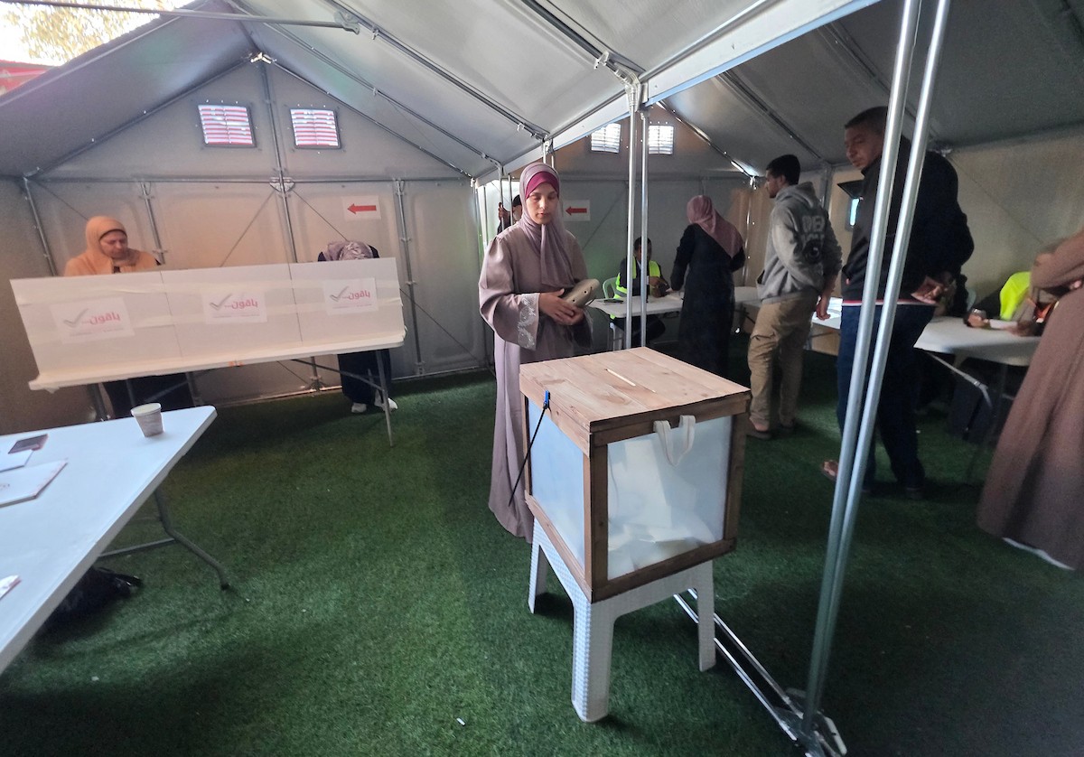 الفلسطينيون يدلون بأصواتهم في مركز اقتراع خلال الانتخابات البلدية في دير البلح، وسط قطاع غزة، في 25 أبريل/نيسان 2026 بعد أكثر من 20 عاما، (صورة: طارق محمد)