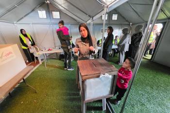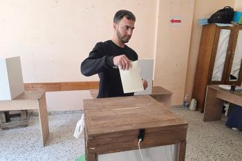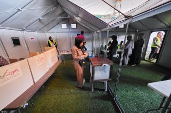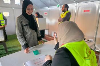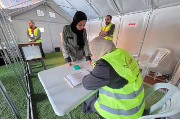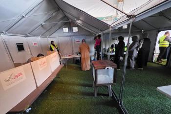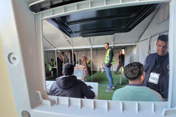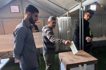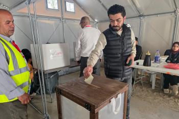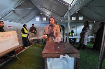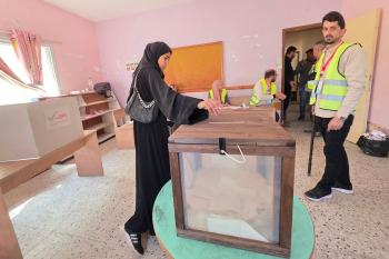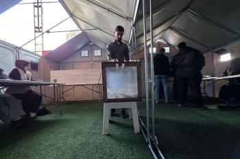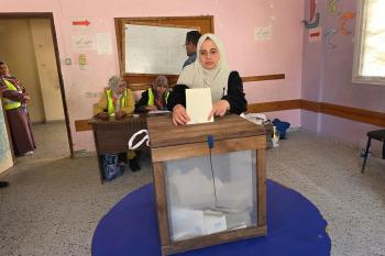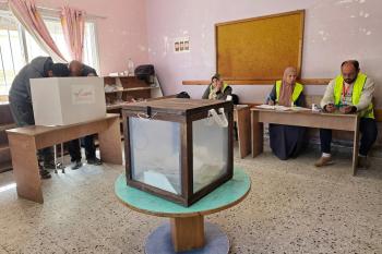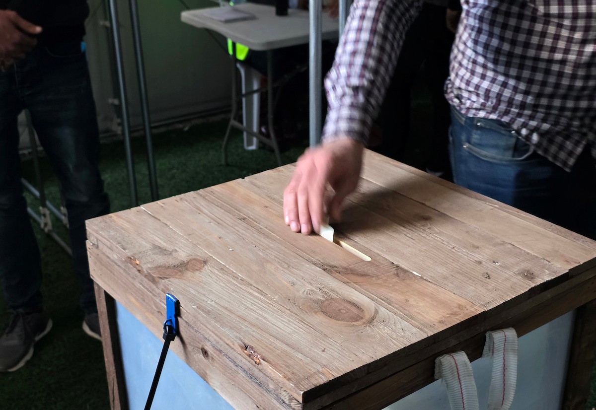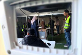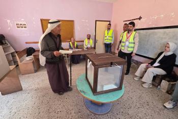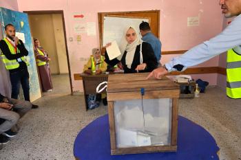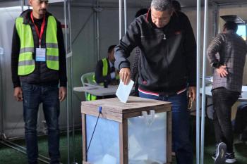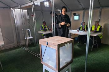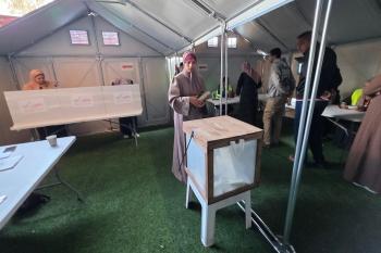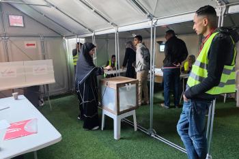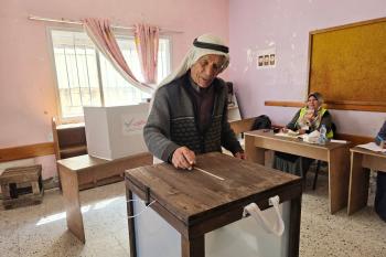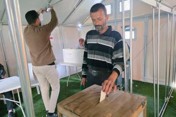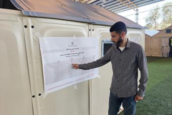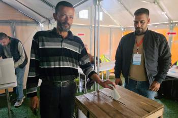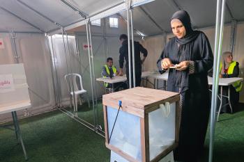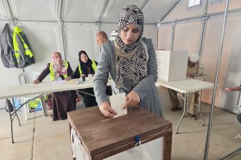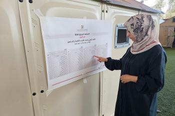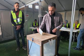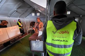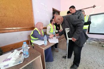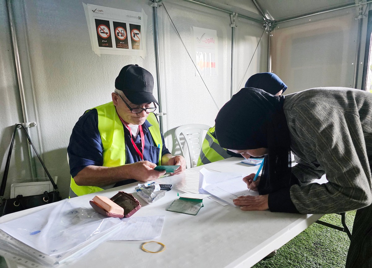 الفلسطينيون يدلون بأصواتهم في مركز اقتراع خلال الانتخابات البلدية في دير البلح، وسط قطاع غزة، في 25 أبريل/نيسان 2026 بعد أكثر من 20 عاما، (صورة: طارق محمد)