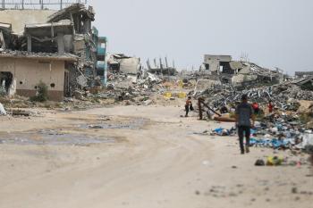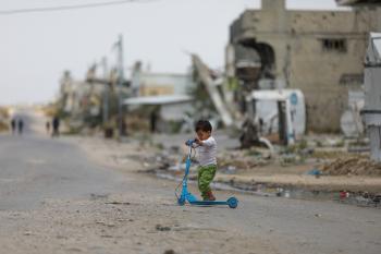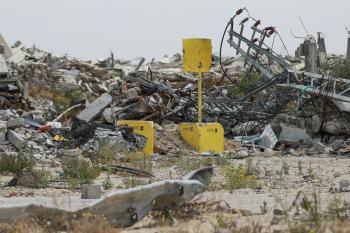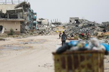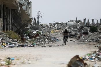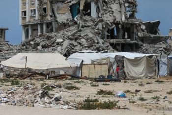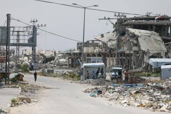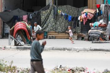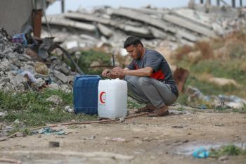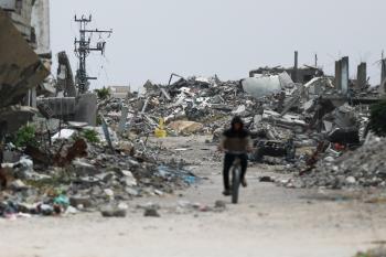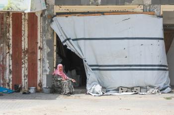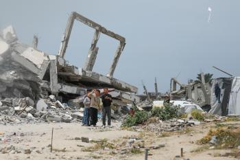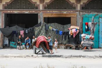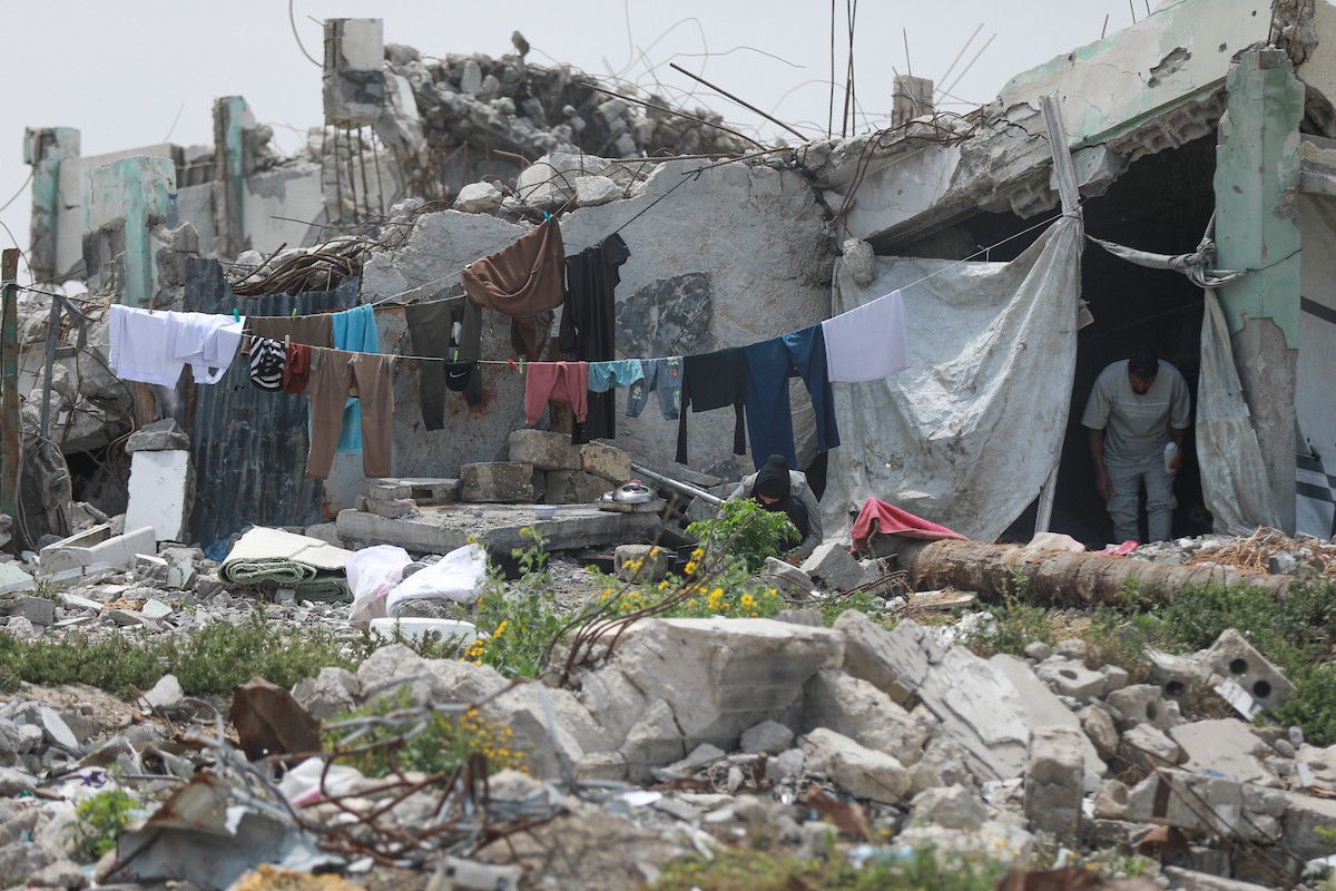 يعيش الفلسطينيون ظروفاً صعبة قرب "الخط الأصفر" شرق خان يونس، جنوب قطاع غزة، في 27 أبريل/نيسان 2026، حيث يواجهون إطلاق نار متكرر في منطقة تُعتبر خطرة، على طول خط حدودي أعادت القوات الإسرائيلية انتشارها فيه بموجب اتفاق وقف إطلاق النار. (صورة: رمزي أبو عامر)