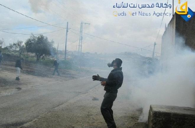 ولدى وصول المسيرة البوابة التي تغلق الطريق بادر جنود الاحتلال المتواجدين هناك باطلاق العشرات من قنابل الغاز والقنابل الصوتية من عدة جهات باتجاه المشاركين في المسيرة بشكل مباشر اضافة الى رشهم بالمياه العادمة التي استخدمتها قوات الاحتلال بشكل كثيف.