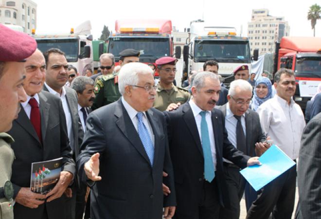 أطلق الرئيس الفلسطيني محمود عباس، ظهر اليوم الأحد، من مقر الرئاسة بمدينة رام الله، الدفعة الأولى من حملة إغاثة أهلنا في سوريا.