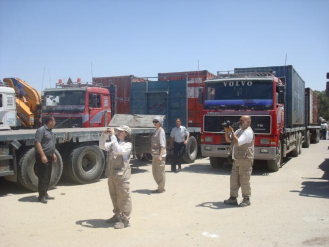 وتضم القافلة القادمة من الاراضي الفلسطينية، سبع عشرة شاحنة محملة بالأغذية والأدوية، وكان في استقبال القافلة السفير الفلسطيني محمود الخالدي، والمدير العام للهيئة العامة للاجئين العرب علي مصطفى، ومدير وكالة غوث وتشغيل اللاجئين الفلسطينيين (الأونروا) في سوريا، بالإضافة إلى ممثلي كافة فصائل منظمة التحرير الفلسطينية بدمشق.