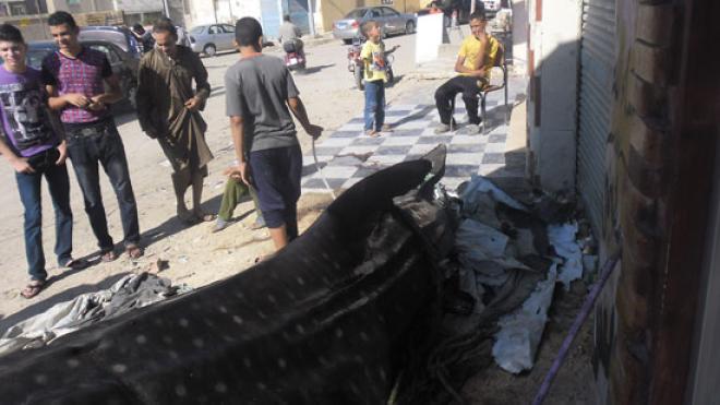 من جانبهم، قام الصيادون الذين تمكنوا من صيد هذه سمكة القرش الضخمة من وضعها بسوق الأنصاري بحي الأربعين، وعرضها لجميع المواطنين المصرين والمترددين على السوق، وهو ما لقي إعجاب واستحسان جميع المارة.