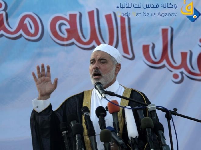 وقال هنية بخطبة عيد الفطر التي أقيمت في ملعب فلسطين بمدينة غزة إن "ما يصيب مصر وأمتنا يصيبنا أيضا، فألمكم ألمنا ودماؤكم دمائنا وغزة ستكون مصدر استقرار وأمن لمصر وسيناء ورفح والعريش ولن تكون أبدا مصدر تهديد أو خطر على الشعب المصري الأبي".