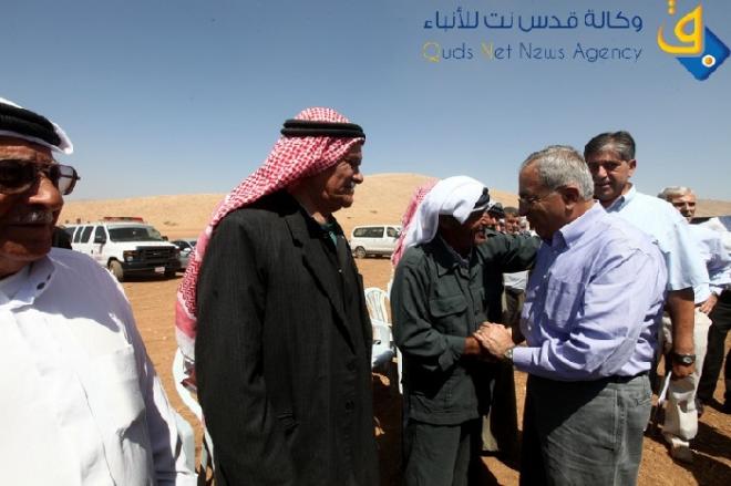 وخلال زيارته المضارب البدوية في الحديدية  وسمرة ومكحول في الأغوار الشمالية قال فياض إن السلطة الوطنية تشعر تماما بألم المواطنين في هذه المناطق، والمعاناة الناجمة عن عمليات الهدم والتهجير ومنع وصول المياه للسكان. وقال:" ألمكم ألمنا، وهمكم همنا، ونتفهم معاناتكم، وما تتعرضون له لا يجب أن يزرع في نفوسكم اليأس، فنحن نواصل العمل معاً رغم كل الصعوبات لكي تتحقق مطالبكم بالسرعة الممكنة".