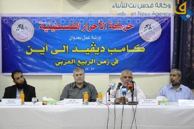 جاء ذلك على لسان المهندس ياسر خلف الناطق الإعلامي لحركة الأحرار الفلسطينية خلال ورشة عمل نظمتها الحركة في الذكرى الـ34 لتوقيع اتفاقية كامب ديفيد بعنوان "كامب ديفيد إلى أين في زمن الربيع العربي" يوم الاثنين في المقر الرئيس لحركة الأحرار بمدينة غزة.