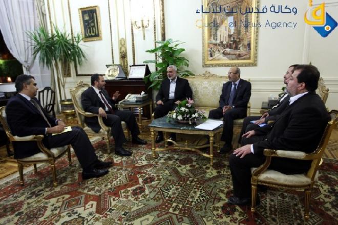 وكان قد إلتقى رئيس وزراء حكومة غزة التي تديرها حركة حماس برئيس الوزراء المصري هشام قنديل في القاهرة، الليلة الماضية،وبحثا العلاقات الثنائية وعدد من الملفات التي تتعلق بالأمن ورفع الحصار المفروض على قطاع غزة.