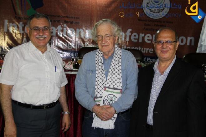 وكان تشومسكي قد وصل غزة على رأس وفد من المفكرين من أمريكا وفرنسا وبريطانيا وكندا أمس للمشاركة في مؤتمر اللغة الانجليزية الدولي الأول في اللغة وآدابها واللسانيات في الجامعة الإسلامية.