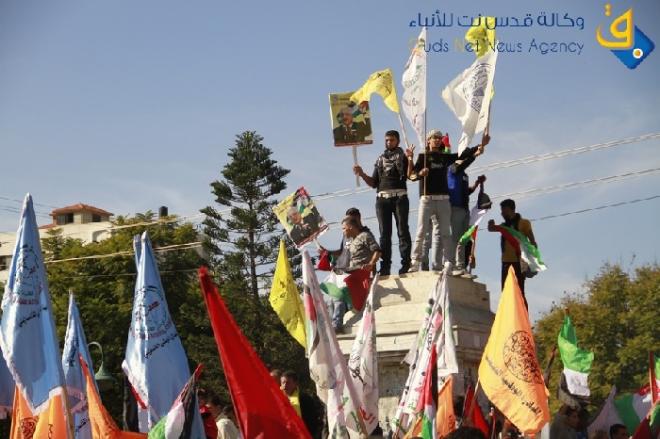 وأوضح مراسل "وكالة قدس نت للأنباء" في رام الله, أن الآلاف من المواطنين الفلسطينيين يتجمعون في المهرجان الذي أقيم في مدينة رام الله في منطقة دوار الشهيد ياسر عرفات وسط المدينة, دعماً للرئيس الفلسطيني في توجهه للأمم المتحدة لرفع مكانة فلسطين.
