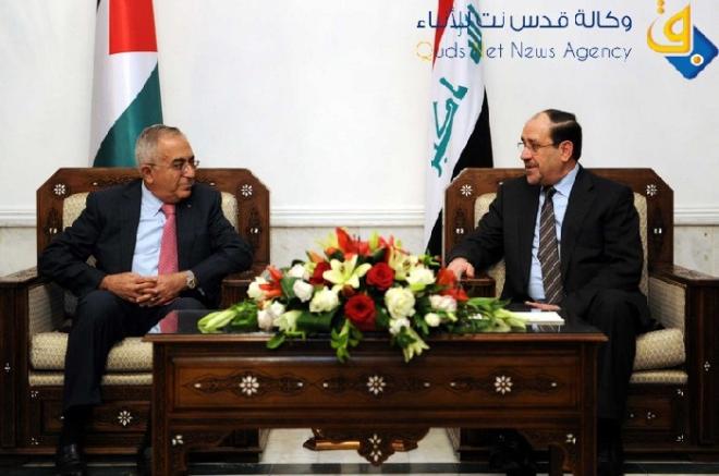 عقد رئيس الوزراء بالسلطة الفلسطينية سلام فياض فور وصوله إلى العاصمة العراقية بغداد اجتماعاً ثنائياً مع نظيره العراقي نوري المالكي، حيث أطلعه على التطورات السياسية في الاراضي الفلسطينية ومخاطر السياسة الاستيطانية التوسعية الإسرائيلية، واستهداف الوجود الفلسطيني في القدس والأغوار وغيرها من المناطق، والتي تهدف إلى منع إمكانية تجسيد السيادة الوطنية على أرض الدولة الفلسطينية التي احتضنتها الأسرة الدولية بصفة مراقب.