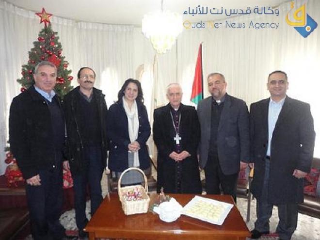 على صعيد اخر استضافت بلدية بيت لحم ممثلة برئيسة البلدية فيرا بابون وبحضور عضو المجلس البلدي نادر عزيزة السبت ايضا وفدا من كنيسة السريان الكاثوليك، حيث تراس الوفد الجندي المطرن مار عورغريس بطرس ملكي مطران السريان الكاثوليك و الاب فارس منصور والمهندس بهنان نازي والمهندس ماهر مصلح نادر عزيزة حيث اطلعتهم بابون على اخر الجهود والاستعدادات للاعياد فيما اكد وفد الكنيسة دعمهم لجهود البلدية وكل المؤسسات الفلسطينية لانجاح الاعياد الميلادية المجيدة والاحتفالات فيها .