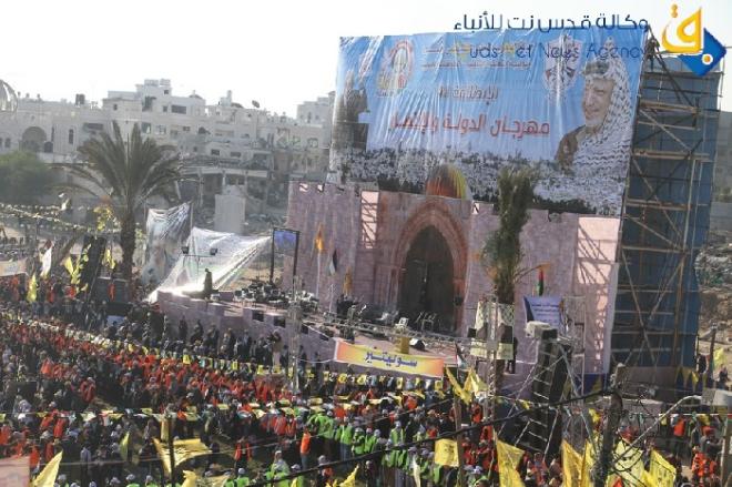 وكان مئات الآلاف من الفلسطينيين المؤيدين والمناصرين لحركة "فتح" توافدوا منذ ساعات الصباح الأولى لساحة "السرايا" للمشاركة بمهرجان "فتح" المركزي الذي يقام للمرة الأولى منذ خمسة سنوات، فيما شهدت شوارع غزة المحيطة بمنطقة "السرايا" التي أطلق عليها اسم "ميدان الشهيد أبو عمار"إغلاق كامل لها، نتيجة اكتظاظ الوافدين للمهرجان .