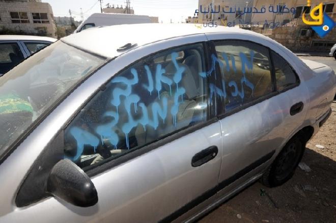 وأفاد مصدر أمني فلسطيني بأن المستوطنون حطموا الزجاج الأمامي والخلفي لمركبة تعود للمواطن باسم أبو دية، وألحقوا أضرارا في هيكلها العام، وخطوا عليها شعارات تدعو الى ترحيل العرب، إضافة لأخرى خطت على بعض ا لجدران .