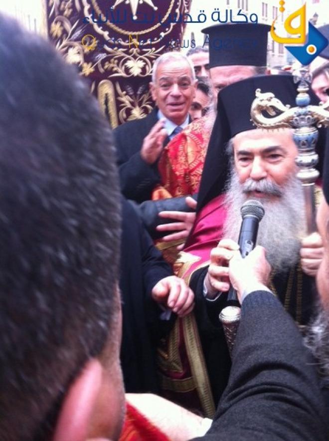 بدوره، قال ثيوفيلوس الثالث: "الكنيسة الأرثوذكسية تهنئكم وتهنئ الشعب الفلسطيني بحصول فلسطين على دولة مراقب في الأمم المتحدة، مدينة بيت لحم هي مدينة السلام والمحبة لكل العالم".