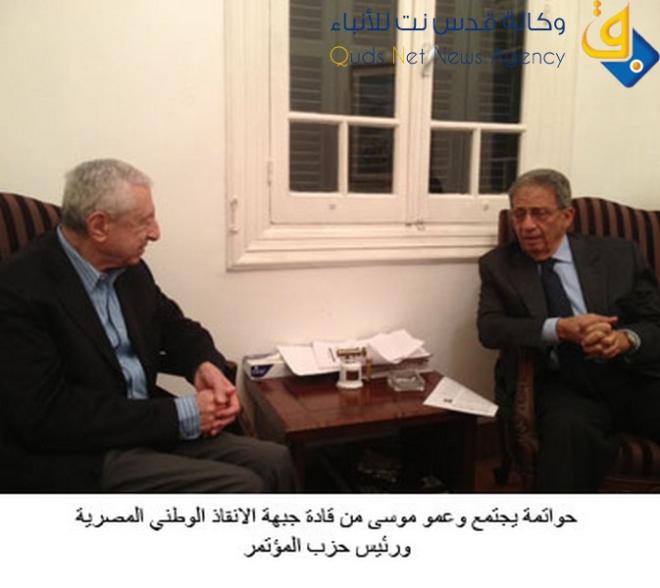 بحث نايف حواتمة الأمين العام للجبهة الديمقراطية لتحرير فلسطين مع عمرو موسى من قادة جبهة الإنقاذ الوطني المصرية ورئيس حزب المؤتمر الوطني، الحالة الفلسطينية والحالة المصرية والأوضاع في بلدان "الانتفاضات والثورات العربية".