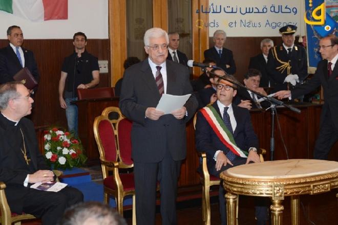 جاء اقوال ابو مازن هذه خلال حفل تسلمه مواطنة الشرف ومفتاح مدينة بومبي في مقاطعة كامبانيا الإيطالية، اليوم الأحد، بحضور رئيس بلدية بومبي، كلاوديو داليسيو، وأعضاء المجلس البلدي.