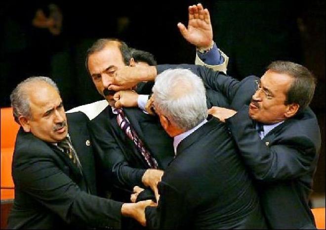 تشاجر أعضاء البرلمان التركي بالأيدي وتراشقوا بزجاجات المياه اثناء مناقشة بخصوص صلاحيات الحكومة في تعيين القضاة وممثلي الادعاء مع تصاعد الخلاف حول طريقة تعامل الحزب الحاكم مع فضيحة فساد.