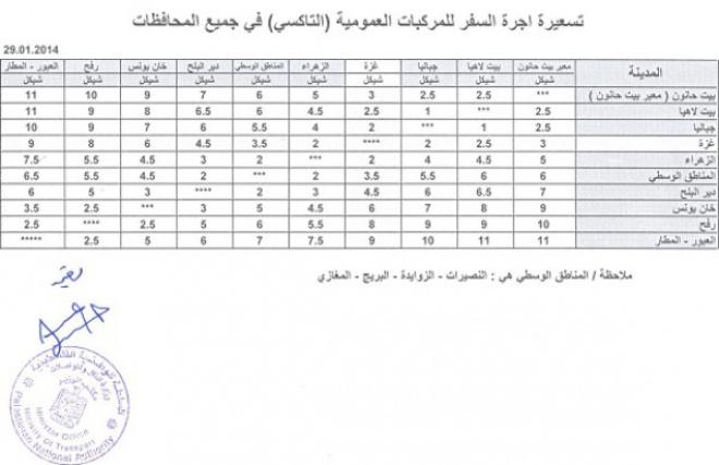 كشف أسامة العيسوي، وزير النقل والمواصلات في الحكومة الفلسطينية بغزة، أن: وزارته تعكف على وضع تسعيرة مواصلات جديدة في محافظات غزة خلال الفترة المقبلة".