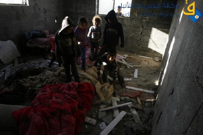 وفي مدينة رفح جنوب القطاع اغارت الطائرات الحربية على منزل مهجور ودفيئة زراعية بمنطقة "الحشاشين" شمال غرب المدينة ، ما ادى الى اصابة اربعة مواطنين بينهم طفلتين، اضافة الى تدمير الدفئية الزراعية بالكامل واحداث انهيار جزئي بالمنزل الذي يعود الى المواطن شكرى ابو ذكار.