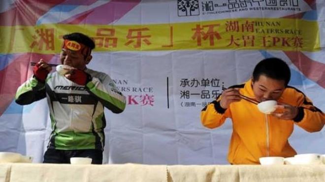 التهم الصيني بان يز هونغ 24 صحناً من المعكرونة الصينية، إلا أنه لم يشبع بل طالب بالمزيد، لعل هذا ما جعله يستحق عن جدارة لقب "ملك الشهية" في الصين. اللافت أن هذا الرجل "الأكول"، الذي تجمهر حوله الناس في مدرسة للكونغ فو في وسط البلاد، نحيل جداً، نظرا إلى النشاط الذي يقوم به.