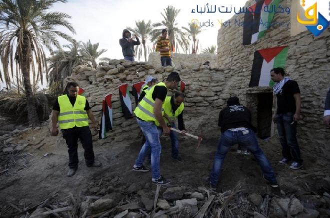 وبدأ النشطاء تحت جنح الظلام في اعداد الارض والتجهيز لاقامة خيام ليقيم بها النشطاء والمتضامنين الدوليين.
