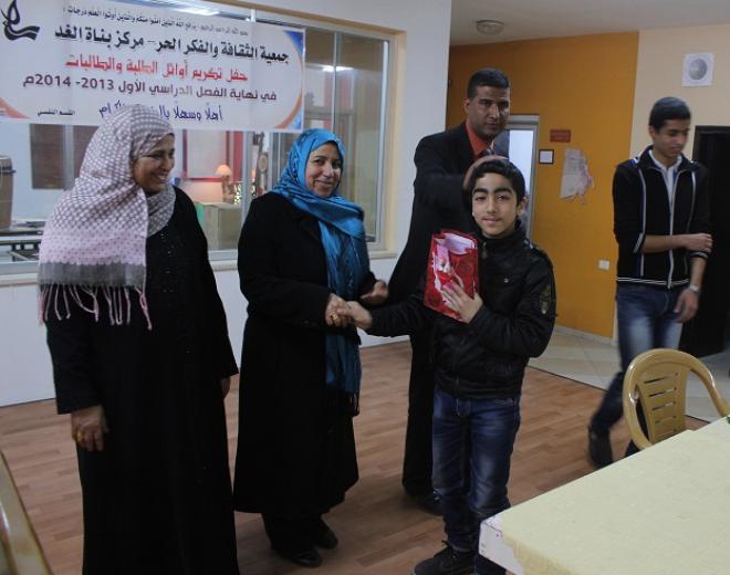 نظم مركز بناة الغد التابع لجمعية الثقافة والفكر الحر ،اليوم ، حفلا تكريما لأوائل الطلبة والمتفوقين المنتمين للمركز  في الفصل الدراسي الأول للعام الدراسي الحالي، بحضور عائلاتهم ومدرسيهم وأصدقائهم ،وذلك في مقر المركز غرب محافظة خانيونس.