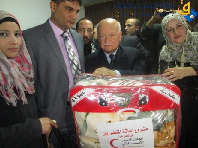 وكان الحفل قد افتتح بتلاوة عطرة من الذكر الحكيم ثم السلام الوطني الفلسطيني ، وعرض توثيقي للمساعدات والمشاريع المقدمة من الهلال الاحمر الاماراتي في قطاع غزة .