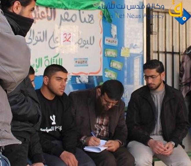 زار القيادي في حركة الجهاد الإسلامي خضر عدنان طلبة الكتلة الإسلامية المعتصمين في جامعة بيرزيت في رام الله منذ 32 يوما، احتجاجاً على مواصلة اعتقال الأجهزة لأربعة من زملائهم.