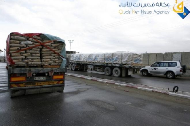 واوضح فتوح بانه سيتم ايضا ادخال 9 شاحنات محملة بالأسمنت و 76 شاحنة  محملة بالحصمة لمشاريع وكالة الغوث، اضافة الى ضخ كميات من السولار الصناعي الخاص بمحطة توليد الكهرباء وكميات من البنزين و سولار المواصلات و غاز الطهي ".