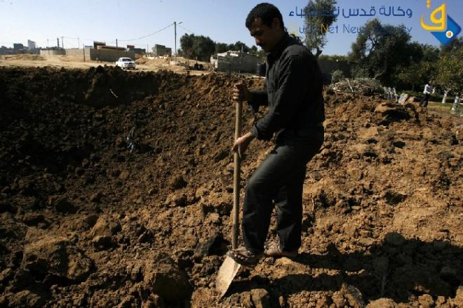 (وكأن برميل متفجرات ضرب المكان) هذا ما وصف به مكان القصف، فالأرض الطينية الحمراء امتزجت بغبار ورماد البارود وتحولت لسوداء، وحفرة القصف تجاوزت العشرة أمتار تحت سطح الأرض، فيما تقطعت ثمار البرتقال عن الأشجار وتناثرت، بفعل شدة القصف.