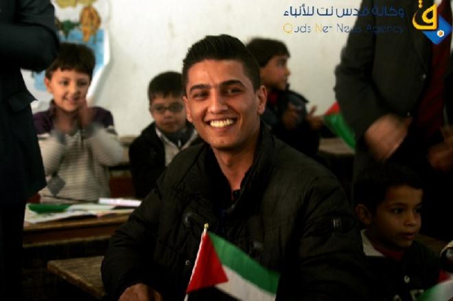 وعبر الفنان الفلسطيني عن سعادته لوجوده داخل فصلة الدراسي، وببلدة مسقط رأسه التي تربى وترعرع بها وعاش طفولته وأجمل لحظات حياته، قائلاً : "هذه بلدي ومن حقي أن أعود لها بأي وقت، ولن أنقطع عنها وسأزورها باستمرار، ولن اقطعها أبدًا، وما قدومي سوى دليل على ذلك".