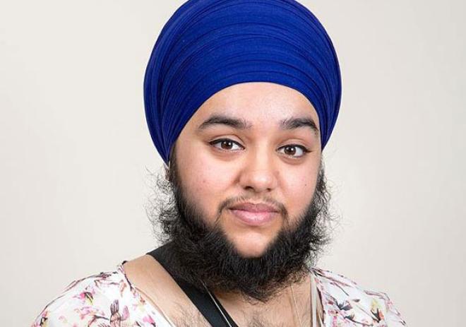 وأضافت أن هارنام قررت التوقف عن إزالة الشعر من وجهها وجسدها بعد تعميدها كأحد إتباع ديانة السيخ التي تحظر قص شعر الجسم، لكنها شعرت بالخجل من لحيتها خلال أعوام مراهقتها وكانت تقوم بإزالتها بالشمع مرتين في الأسبوع، وباستخدام معجون وشفرة الحلاقة كما يفعل الرجال.
