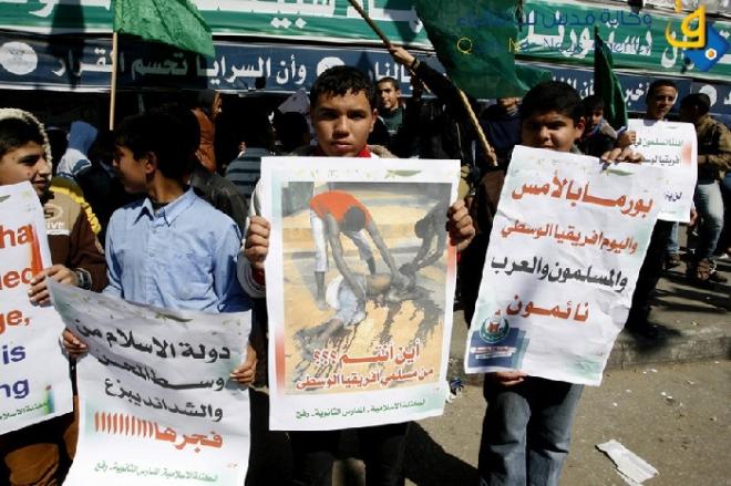 نظم عشرات الفلسطينيين وقفة أمام مقر المندوب السامى للأمم المتحدة وسط مدينة غزة، اليوم السبت، تضامنا مع مسلمى أفريقيا الوسطى.