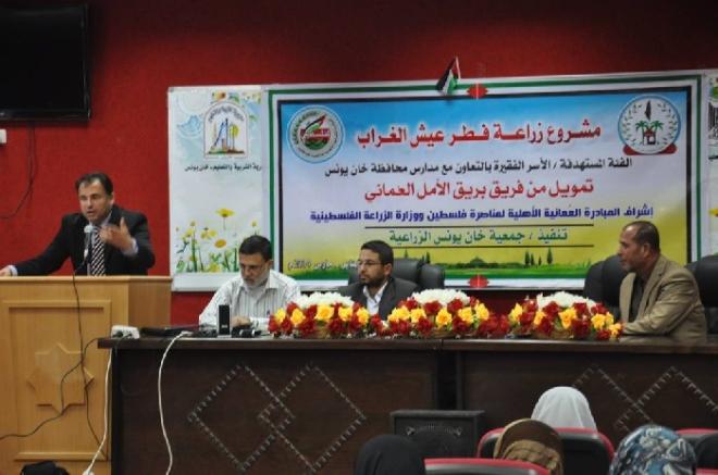 وقال عبد الله الاسطل منسق المبادرة في كلمة له خلال افتتاح المشروع وبحضور ممثلين عن الجمعية ووزارة الزراعة ومديرية التربية والتعليم أن المبادرة العُمانية الأهلية لمناصرة فلسطين انطلقت قبل عام لتكون نافذة للتضامن الأهلي ولتتيح للعُمانيين إظهار اهتمامهم لمد يد العون والمساعدة لأشقائهم من الشعب الفلسطيني ، ولتقوم بأعمال ومشاريع من شأنها التخفيف عن الأسر المحتاجة داخل فلسطين وبالأخص قطاع غزة المحاصر للعام الثامن على التوالي .