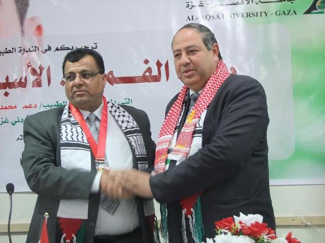 في إطار التواصل والتعاون المشترك جامعة الأقصى ممثلة برئيسها سلام الأغا، تقلد قائد قوة المستشفى الأردني الميداني 28 العقيد ركن محمد الحموري وسام الجامعة من الدرجة الأولي.