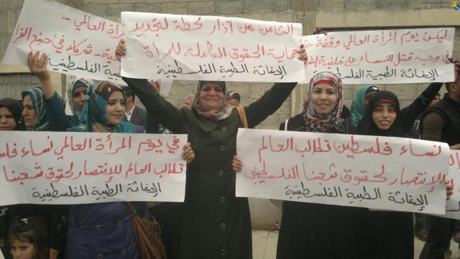 شاركت  جمعية الاغاثة الطبية الفلسطينية في مسيرة يوم المراة العالمي والتي نظمها " قطاع المرأة في شبكة المنظمات الاهلية بالتنسيق مع الاتحاد العام للمراة الفلسطينية والتي انطلاقت  من ساحة الجندي المجهول في مدينة غزة وصولا لمقر الامم المتحدة وسط هتافات تطالب بفك الحصار الاسرائيلي المفروض على قطاع غزة منذ سنوات وانهاء الانقسام ووقف جميع اشكال العنف ضد المرأة .