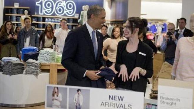 قام باراك أوباما في نيويورك بالتسوق سريعاً في متجر للألبسة زاد قبل فترة قصيرة الحد الأدنى لأجور العاملين فيه، وهو إجراء يدعمه الرئيس الأميركي ويعارضه الكونغرس.