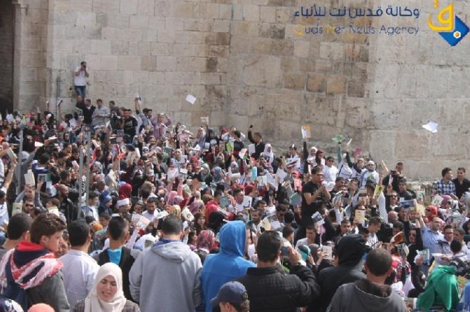 ومع نهاية الفعالية تجمع الالاف من الشبان والفتيات امام درجات باب العامود رافعين الاعلام الفلسطينية والكتب الثقافية،وسط ترديد الهتافات التي تؤكد على عروبة هذه المدينة المقدسة.