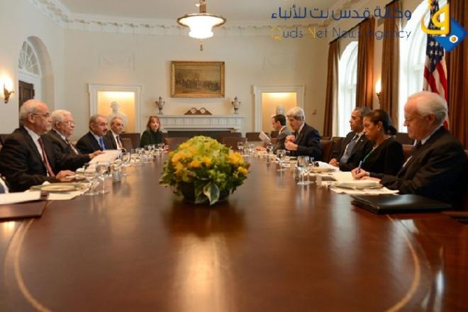 واثناء محادثاته مع أوباما في البيت الأبيض قال الرئيس عباس إن الوقت يوشك على النفاد امام مفاوضات الشرق الأوسط ودعا إسرائيل الى المضي قدما في الإفراج عن دفعة أخيرة من السجناء الفلسطينيين بحلول نهاية مارس آذار لإظهار أنها جادة بشأن جهود السلام.