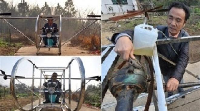 استطاع مزارع صيني كسب الرهان بنجاحه في تصنيع طائرة هيلوكبتر قادرة على الطيران، باستخدام بعض البقايا المعدنية وقطع غيار لدراجة نارية قديمة.