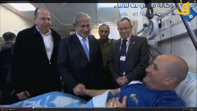 تفقد رئيس الوزراء الإسرائيلي بنيامين نتنياهو برفقة جيشه موشي يعلون الجنود الذين أصيبوا اول امس إثر تفجير عبوة ناسفة في هضبة الجولان المحتل.