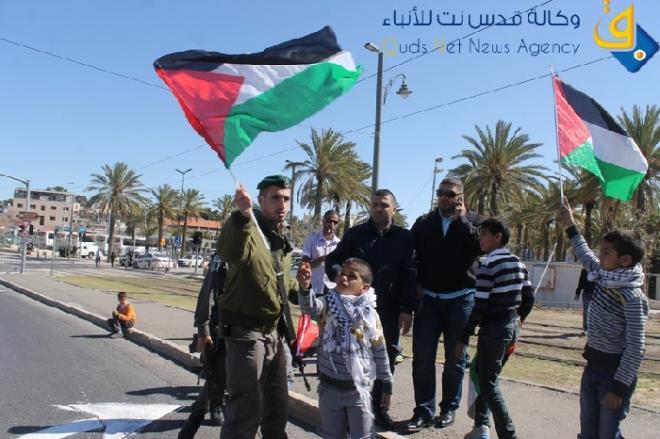 وذكرت مراسلتنا بانه أثناء مرور المتسابقين في شارع المصرارة حاول احد المشاركين من إحدى الدول الاوروبية أخذ العلم الفلسطيني من أحد الاطفال لرفعه خلال المارثون التهويدي، الا ان جنود "حرس الحدود" هاجموا المكان واستولوا على العلم الفلسطيني من أيدي الاطفال بالقوة،وتم اعتقال كلا من جهاد عويضة، وكايد الرجبي واقتياد المعتقلين لقسم التحقيق في شرطة صلاح الدين.