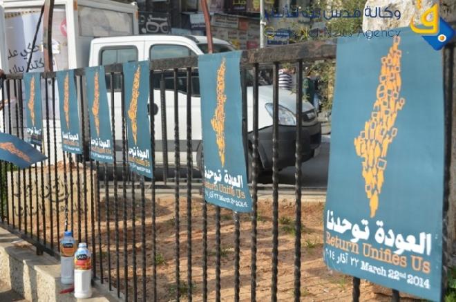 وينظم الفلسطينيون في كل من الضفة الغربية والقدس وقطاع غزة وسوريا ولبنان وفرنسا والمملكة المتحدة وتشيلي واستراليا وأماكن أخرى، مسيرات كشفية ومعارض ملصقات سياسية ومسيرات شعبية حول المطلب الشعبي المتمثل بالوحدة الوطنية وحق العودة.