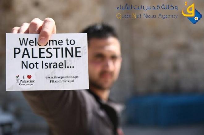 استكمل متطوعو حملة "أنا بحب فلسطين" أمس السبت فعالية توزيع بطاقات على السياح الأجانب في بيت لحم كتب عليها باللغة الانجليزية Welcome to Palestine not Israel".