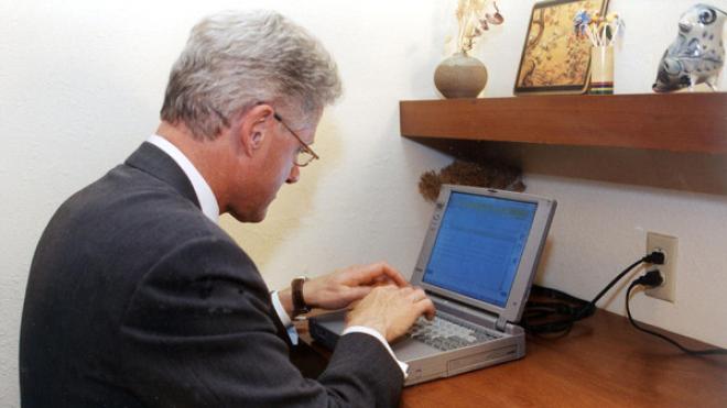 يعرض موقع إلكتروني جهاز الكمبيوتر المحمول الذي استخدمه في تشرين الثاني/نوفمبر 1998 الرئيس الأميركي الأسبق بيل كلينتون لإرسال أول رسالة إلكترونية له خلال توليه الرئاسة والتي كانت موجهة الى رائد الفضاء جون غلين خلال مهمة في الفضاء، للبيع في المزاد.