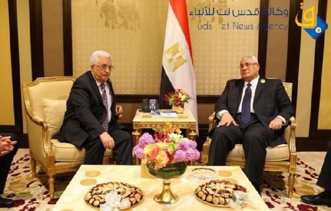 أكد الرئيس المصري عدلي منصور انه على الرغم من تعدد الشواغل المصرية في المرحلة الراهنة إلا أن القضية الفلسطينية ستظل لها مكانتها وأولويتها المتقدمة على أجندة السياسة الخارجية المصرية، مشدداً على دعم مصر الكامل لاِلتزام الجانب الفلسطيني بالثوابت العربية وقرارات الشرعية الدولية ذات الصلة.