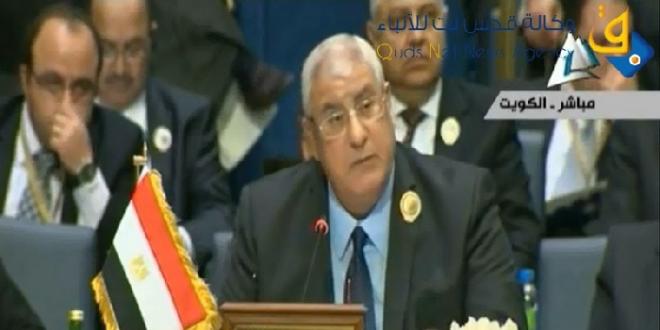 أكد الرئيس المصري عدلي منصور أن القضية الفلسطينية كانت وماتزال "قضيتنا المحورية "، وان الاحتلال الإسرائيلى وصمة عار في جبين الإنسانية ، مطالبا بإعلان الدولية الفلسطينية على حدود ما قبل 1967