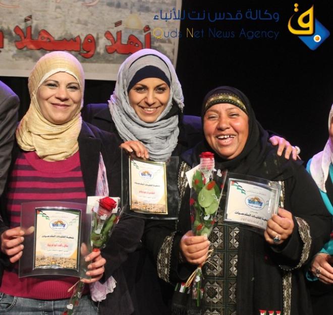 كرمت جمعية الفتيات المقدسيات عدد من أمهات الأسرى والشهداء والناشطات المقدسيات في يوم المرأة الفلسطينية على خشبة مسرح الحكواتي الفلسطيني في القدس المحتلة، بحضور مستشار ديوان الرئاسة الفلسطينية والمختص في شؤون القدس، رئيس لجنة المرابطين في القدس والأقصى يوسف مخيمر، والشاعرة المقدسية رانية حاتم.